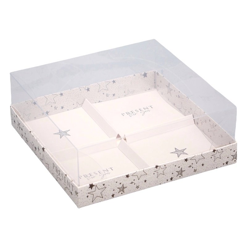 Коробка для сладостей с прозрачной крышкой "Present" 17,8х17,8х6,5 см