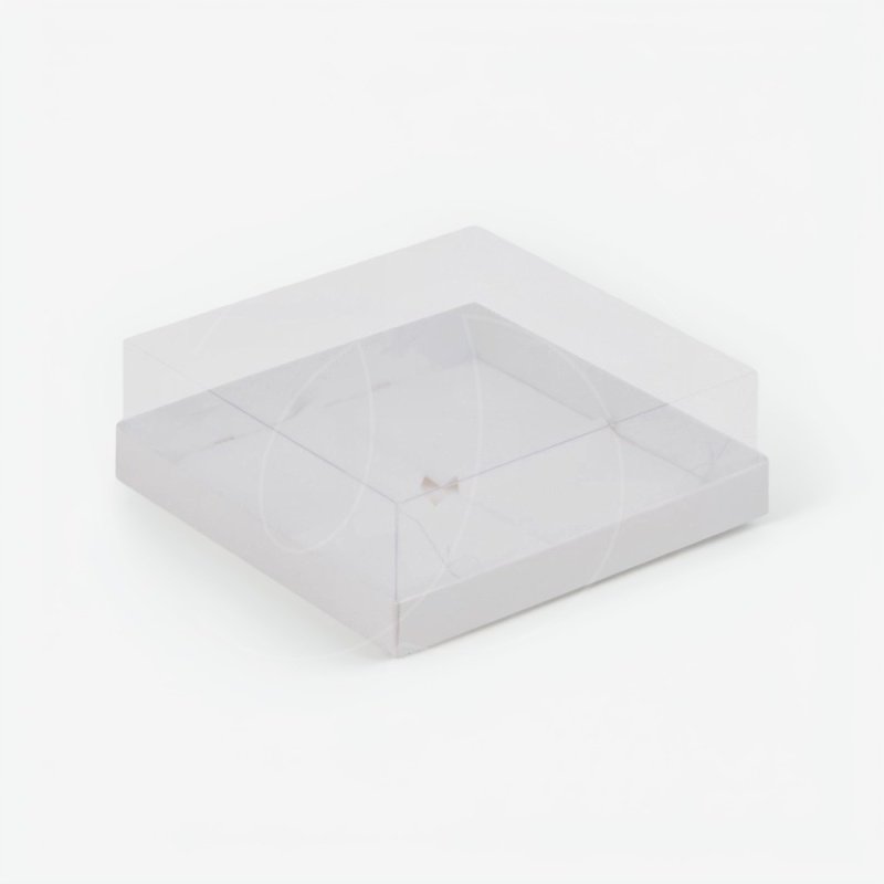 Коробка на 4 пирожных с прозрачной крышкой белая 19х19х8 см