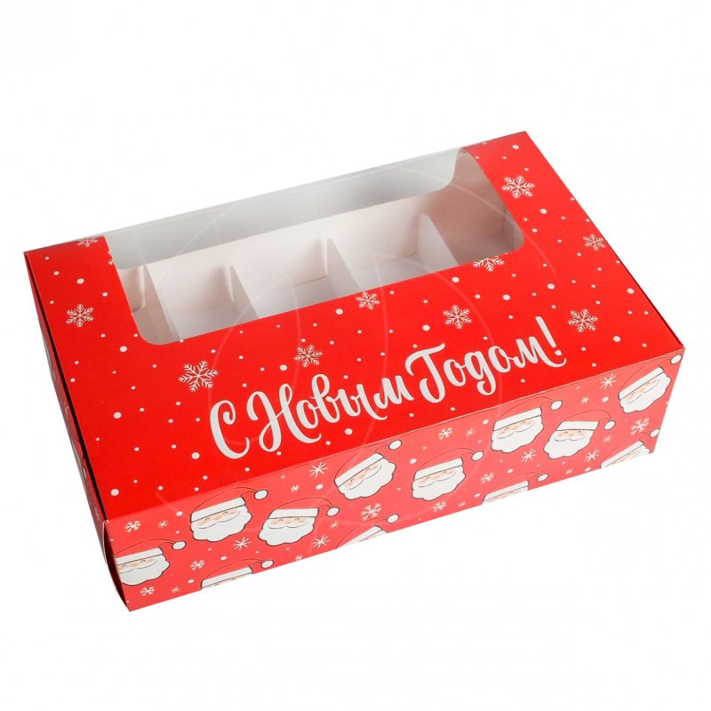 Доставка Коробка на 5 эклеров и эскимо с окном "С Новым Годом" 25,2х15х7 см из магазина в вашем городе: