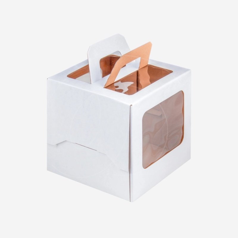 Доставка Коробка для торта с окном и ручками белая 24х24х24 см из магазина в вашем городе: