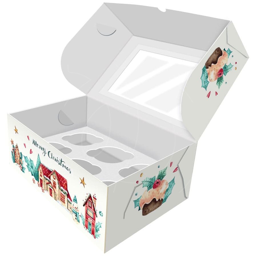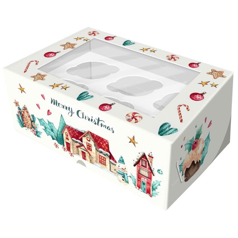 Доставка Коробка на 6 капкейков с окном "С Рождеством!" 25х17х10 см из магазина в вашем городе: