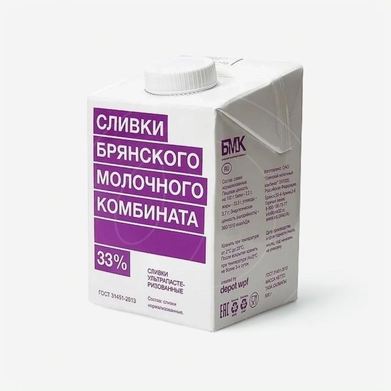 Доставка Сливки нормализованные БМК 33% 500 мл из магазина в вашем городе: