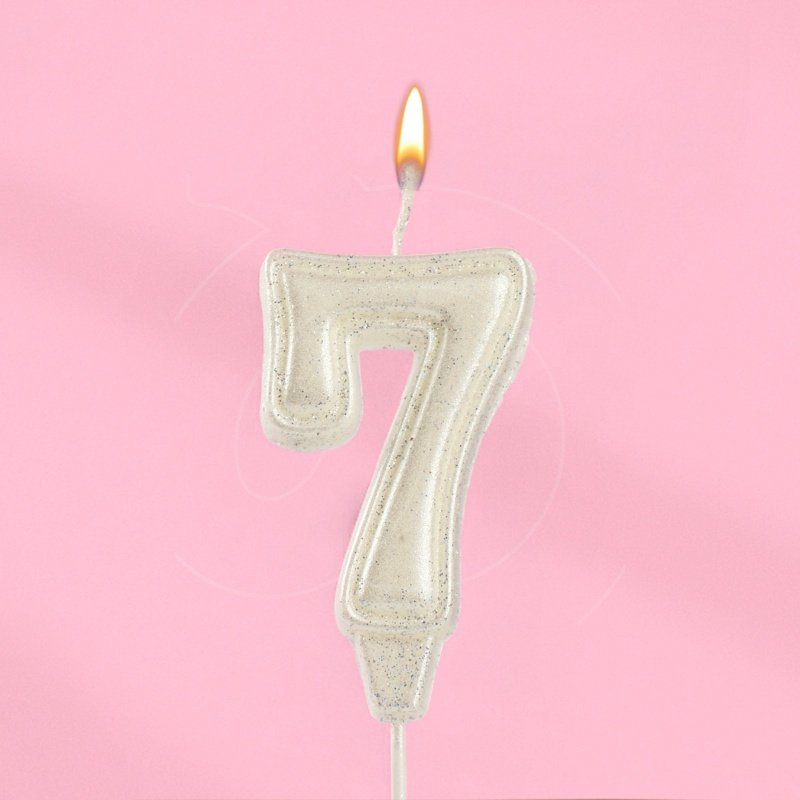 Доставка Свеча декоративная Цифра "7" Жемчужный перламутр с блёстками из магазина в вашем городе: