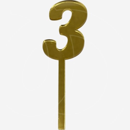 Доставка Топпер декоративный акриловый "Цифра 3" Золото 9,5х3 см из магазина в вашем городе: