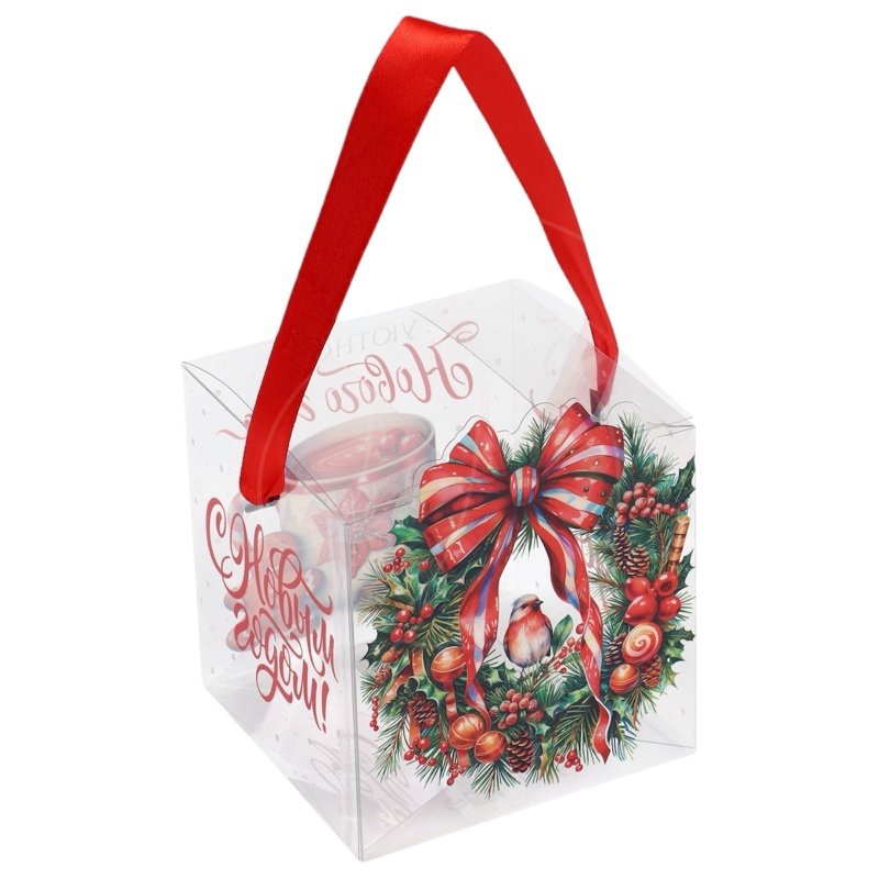 Доставка Коробка для сладостей прозрачная "Зимний венок" 10х10х10 см из магазина в вашем городе: