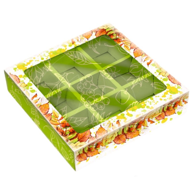 Доставка Коробка на 9 конфет с окном "Осенний букет" 13,8х13,8х3,8 см из магазина в вашем городе: