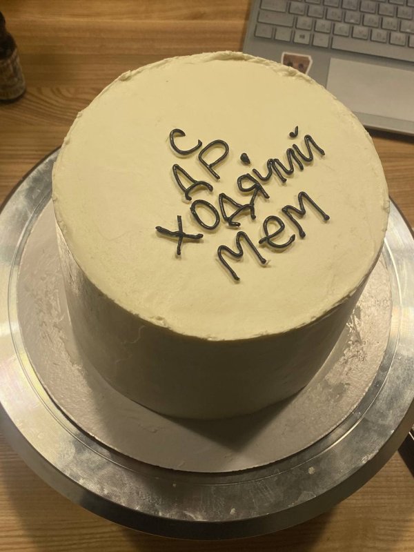 Наконец-то черный краситель, который не мигрировал на торт! Я все равно нанесла в качестве подложки белый текст, но даже на фото видно, что надпись не покрасила его. Обычно черный подкрашиваю углем, здесь не пришлось, цвет и так хорош